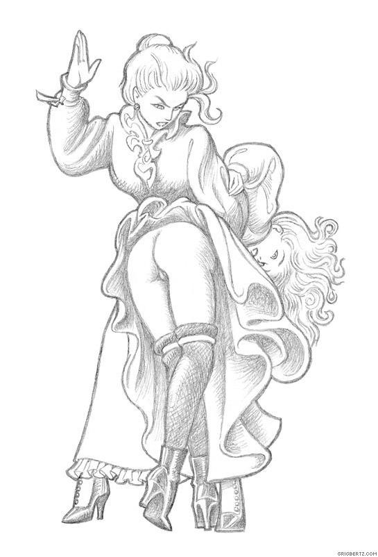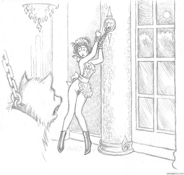 Even with the precaution of chaining Julie's hands behind her, play gets a bit rough.