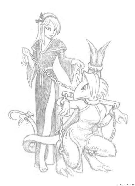 The key holder to Celeste's magic chains can set tasks for her to perform. Failure to do so in a timely manner would trigger would trigger a more punishing bondage, a strict hogtie for example.