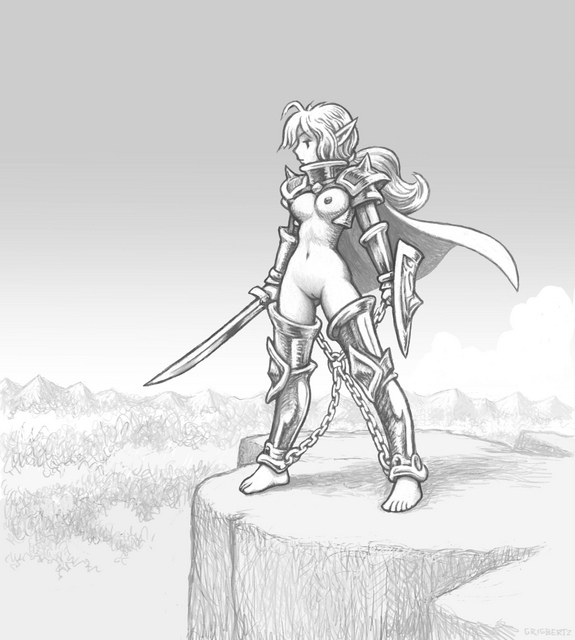 With her new unremovable magic armor set, she has had no choice but to continue her adventuring career naked, as it doesn't allow her to wear anything else. It does provide her with enough magic enhancement to make her one of the strongest adventurers in town, able to take on the toughest missions solo.