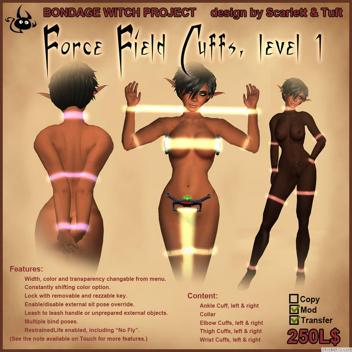 Magic Cuffs, Level 1 Date: 2008-08-17 Part of Magic Lock, Scarlett's restraint system. Check it out on the wiki.