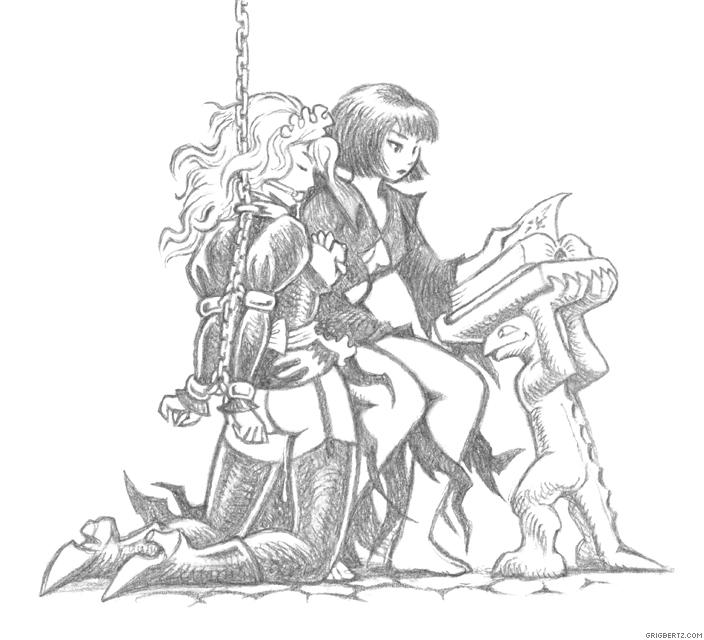 Using her Bondage Witch powers, she befriended a dragonling. Without Sofia to grant her explicit permission, Scarlett's chains prevented her from using magic for defense. However, she could charm monsters into serving her if they touched her intimately. Given the monsters' strong attraction to beautiful women, this ability had been proven invaluable.