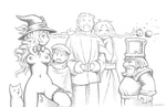 Erbeth has to manage her witchery business while naked and tied up, as decreed by her Pixie Ceding, who is safely hidden inside the witch hat at this point.