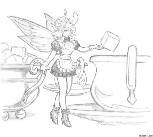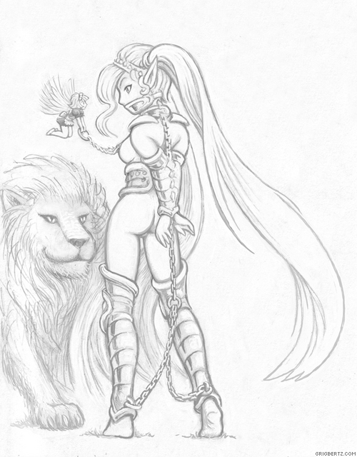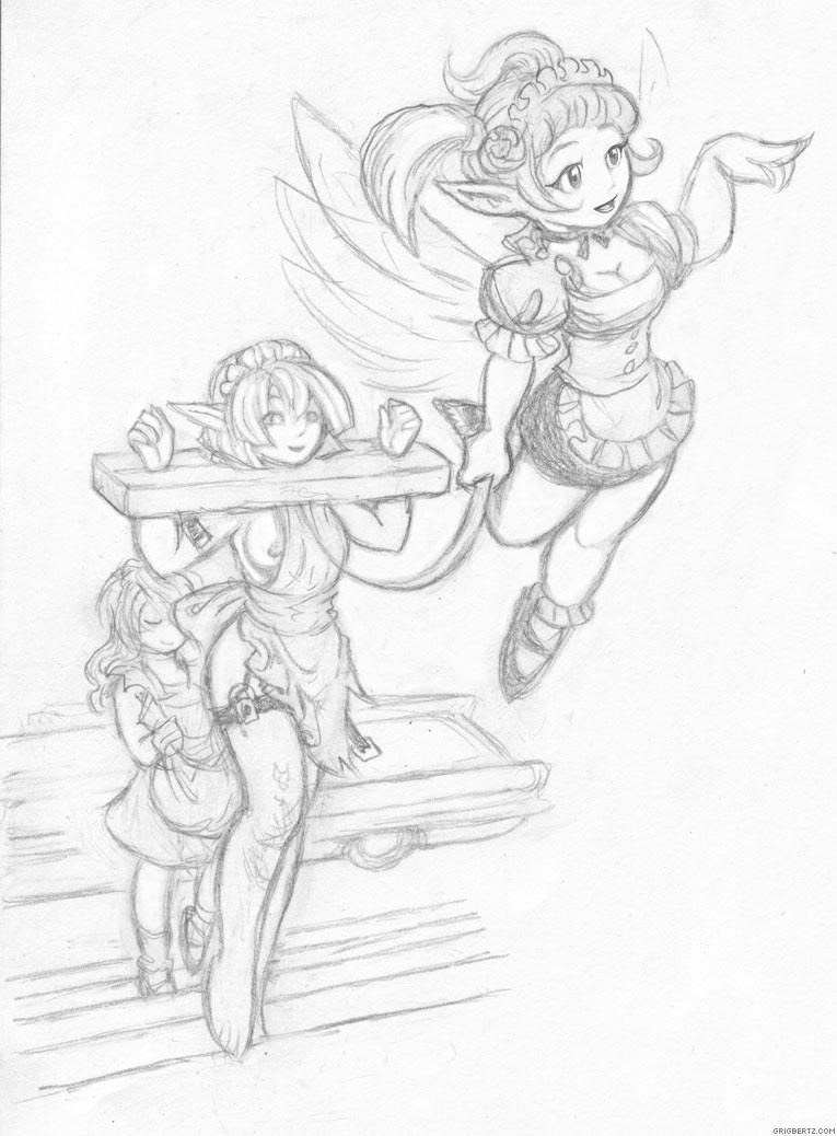 The maids Beryl and Indigo enjoy a good night's sleep after another busy day. With Beryl trapped in a bondage puzzle box Indigo can for once snuggle safely on her friend's bosom without fear of being crushed by her habitual tossing and turning.