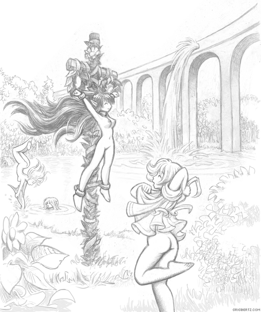 When Petsia and Lexel decided to "experiment" on Friid's magical restraints, they got seriously distracted. Lexel was blindfolded by Petsia, as being watched seemed to affect Friid's powers. However, that made Lexel lose her concentration, and her magical restraints started playing around, to Petsia's annoyance.