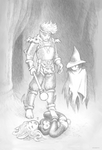 Fiona the Bunny Sorceress got captured inside the dungeon maze and put in a snugglebunny suit. Much to her own surprise she managed to cast a Confusion spell on the entire hunting party, causing them to drop her and wander away aimlessly. Her familiar soon appeared to keep her company and help out to the best of its ability