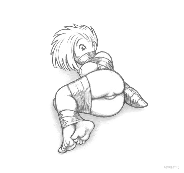 The ropes and gag seem to have been absorbed by the self-replicating metallic nano-substance her team was working on.