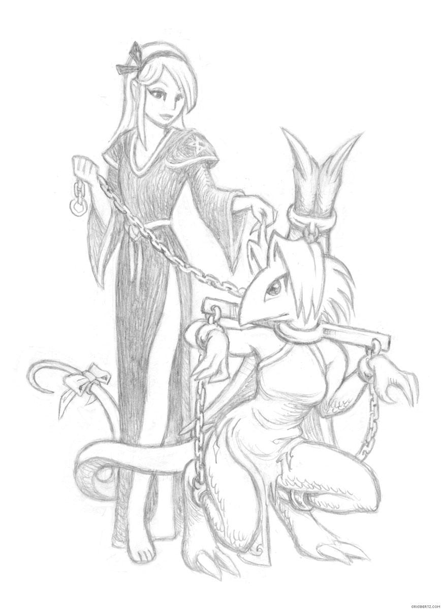The key holder to Celeste's magic chains can set tasks for her to perform. Failure to do so in a timely manner would trigger would trigger a more punishing bondage, a strict hogtie for example.
