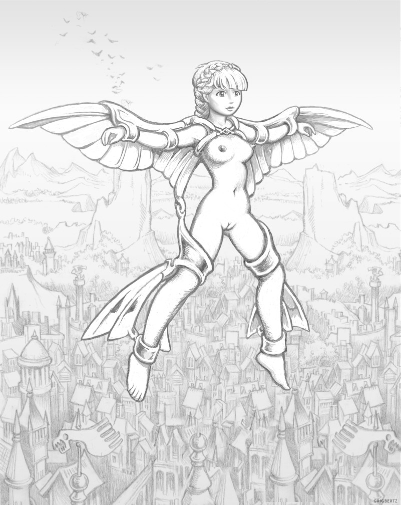 With magic flying rig and her harpy friends she will provide transport and delivery service for the well-to-do of Malev City.
