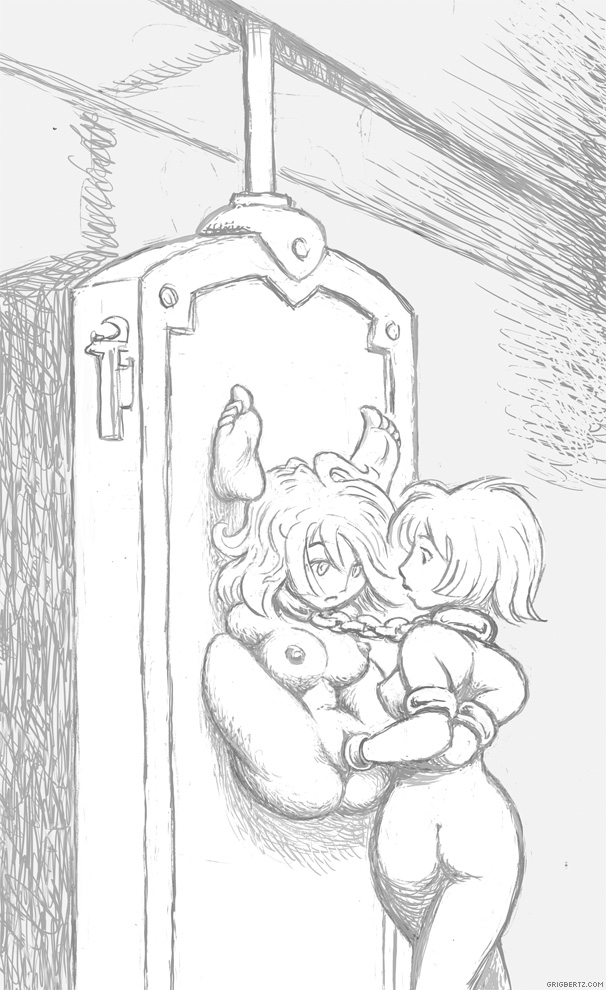 When Petsia and Lexel decided to "experiment" on Friid's magical restraints, they got seriously distracted. Lexel was blindfolded by Petsia, as being watched seemed to affect Friid's powers. However, that made Lexel lose her concentration, and her magical restraints started playing around, to Petsia's annoyance.