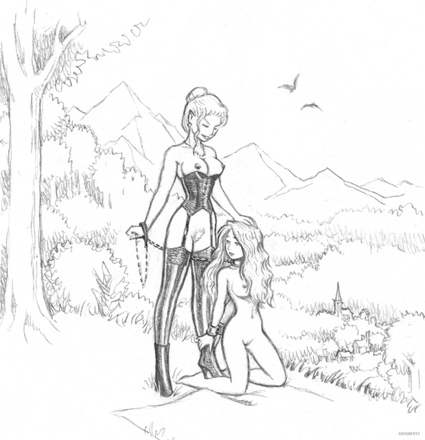 Even with the precaution of chaining Julie's hands behind her, play gets a bit rough.