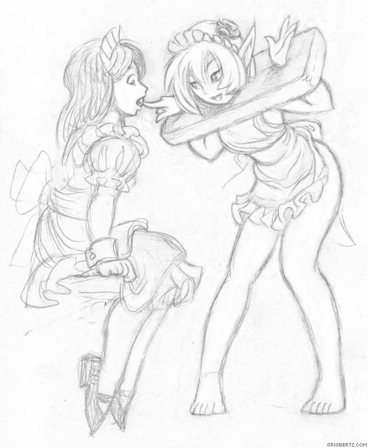 The maids Beryl and Indigo enjoy a good night's sleep after another busy day. With Beryl trapped in a bondage puzzle box  Indigo can for once snuggle safely on her friend's bosom without fear of being crushed by her habitual tossing and turning.