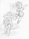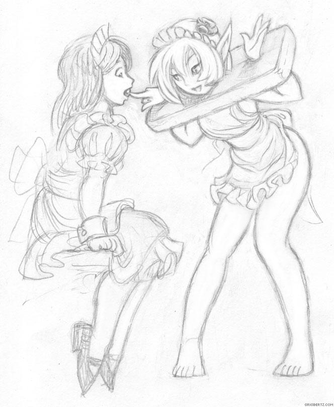 The maids Beryl and Indigo enjoy a good night's sleep after another busy day. With Beryl trapped in a bondage puzzle box  Indigo can for once snuggle safely on her friend's bosom without fear of being crushed by her habitual tossing and turning.