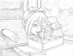 Happy Fun Shinkansen Bento Date: 2010-03-25 Our heroines on their way to Hakone, on a quest to get the stocks unlocked. Eating lunch is tricky but Indigo helps out.