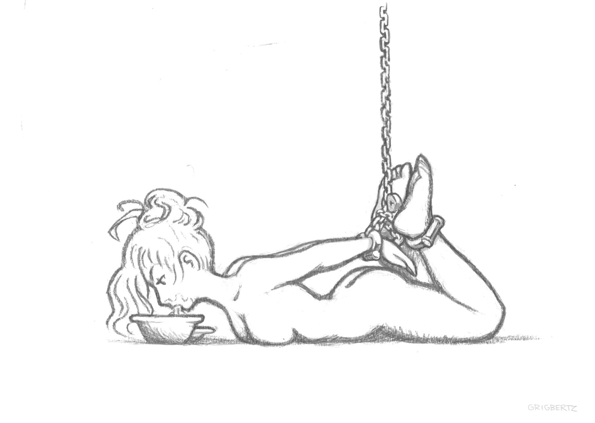 The creature is helpful and friendly as long as it gets to keep Lyssa naked and tied up.